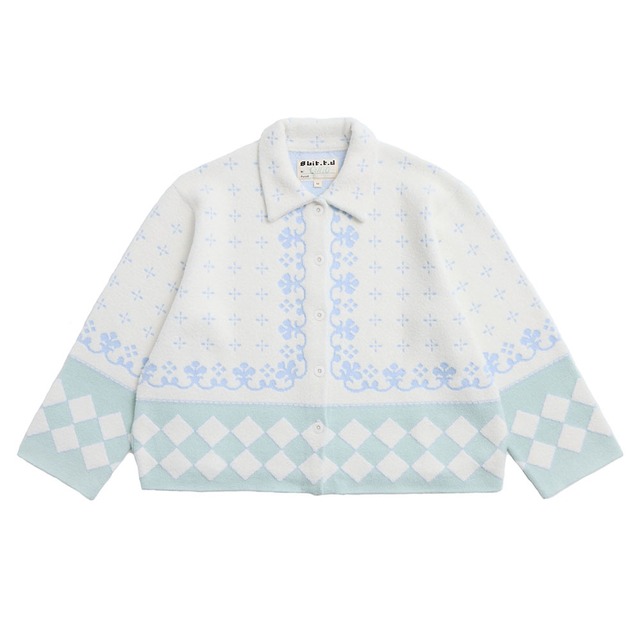 [少量生産・返品不可] [商品詳細] アルゼンチンの旅で出会ったタイルから着想を得た一枚。 モコモコとした白い糸を使用し、全体に柔らかさと清潔感を添えた仕上がりです。 サンテルモで目にした柄タイルは、わざわざ飾り付けたものというよりも、 壁の隅や階段のそば、道端などに、ずっと昔から置かれているように見えた。 ほとんど手入れもされず、貼り替えられることもなさそうだった。 模様自体は一見対称的だが、よく見ると完璧な形ではない。 日差しを浴びて少し色褪せ、その分かえって力の抜けた雰囲気を漂わせていた。 あの午後、散策に疲れて道端に座り、アイスクリームを食べていた。 隣の壁に貼られた花柄のタイルは少し傷んでいたが、配色が愛らしかった。 決して「とても素敵」と言えるものではないのに、 いつの間にか心に残っている。 [商品素材] ナイロン混 [取扱注意] 冷水で手洗い,平干し乾燥がよい,低温アイロン仕上げ処理ができる [サイズ] S/M 肩幅:43 CM / 46 CM 胸幅:55 CM / 60 CM 着丈:59 CM / 62 CM 袖丈:55 CM / 56 CM 裾幅:51 CM / 56 CM [アーティストについて] C:H:O 路辺観察委員会 委員番号No.13 ニット業界に入ってから7年目のプリィティ宝石である。 ふわふわしてる性格、ぼーっとすることと猫吸いのが好き。 画像とアイデアを編むことで描くことが得意。 [女Model: Mina] 身長:162 cm (着用サイズ:M) [その他注意事項] 写真はできる限り実物の色に近づけるようにしておりますが、 使いのモニター設定や解像度などにより実際の商品と色味が異なる場合がございます。 届いた実物商品の色を元にしてください。 糸くず、微小な汚れや微々なサイズ誤差が生じる場合がございます。