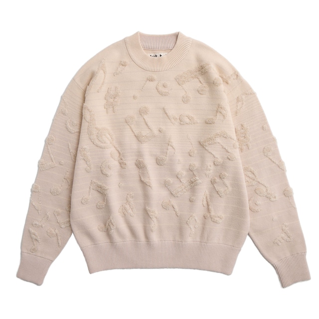 美麗湾の漂う音符ニット長袖トップス ベージュ