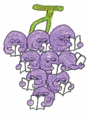 虫や雲、チェリーやぶどうのような果物、きのこや野菜、さらには本そのものまで。