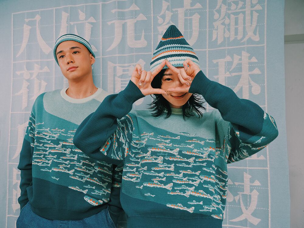 「ネットをよじ登る深海魚.ver クールネック長袖トップス」の配色を活かし、