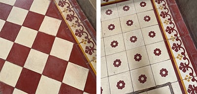 サンテルモで目にした柄タイルは、わざわざ飾り付けたものというよりも、
