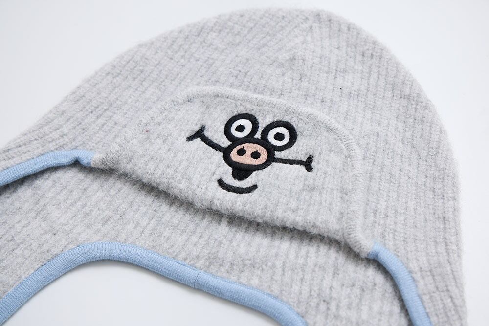 ”[Megumi Yamazaki] Dogs Know Everything スタンドカーラー長袖トップス”の配⾊を活し、 ふわっとボリュームのあるループヤーンで帽体を編み立て、