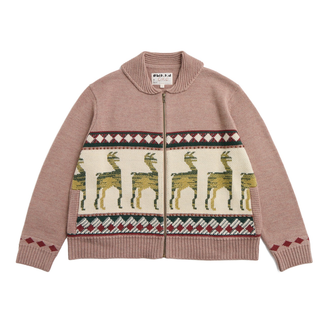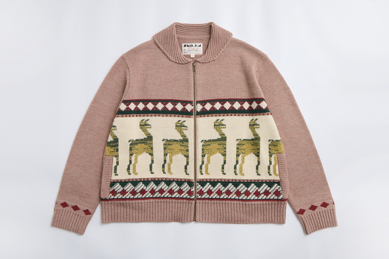 ジャケットの前身頃に描かれたグアナコ柄は、