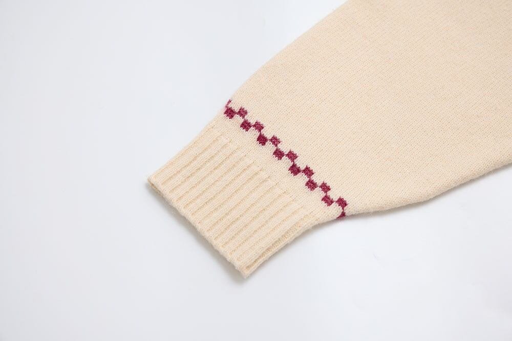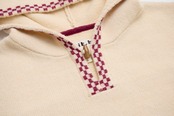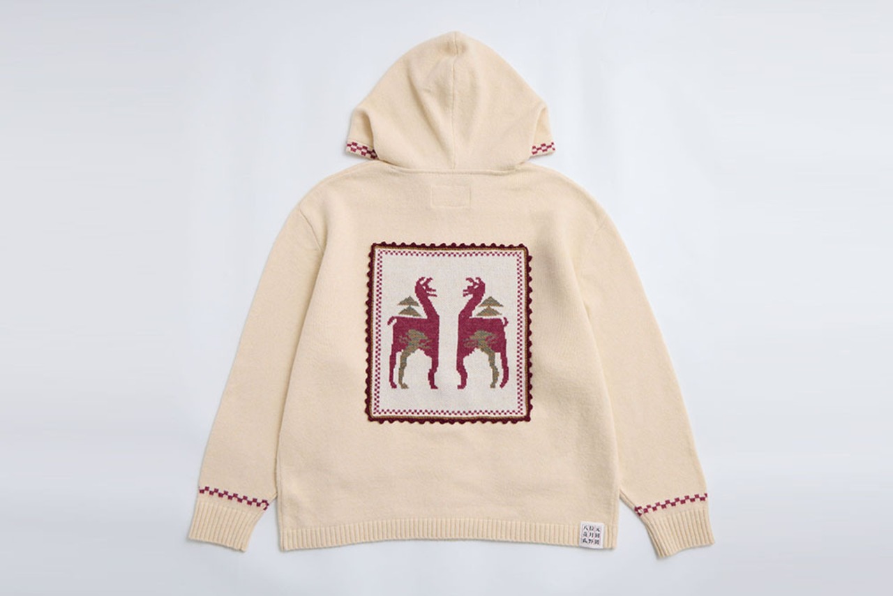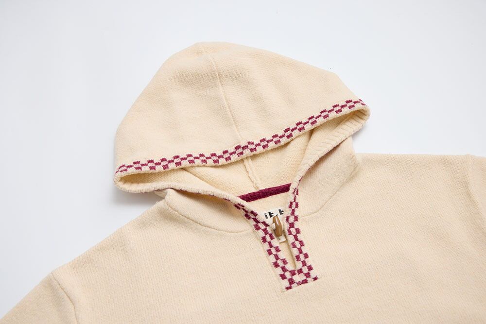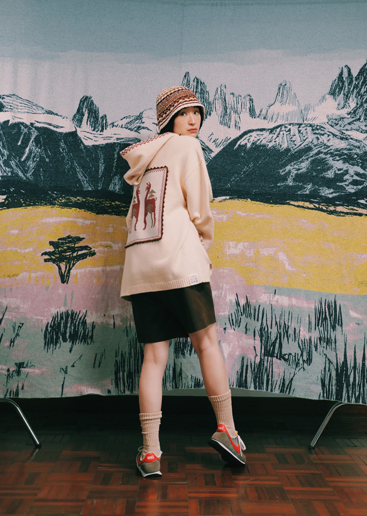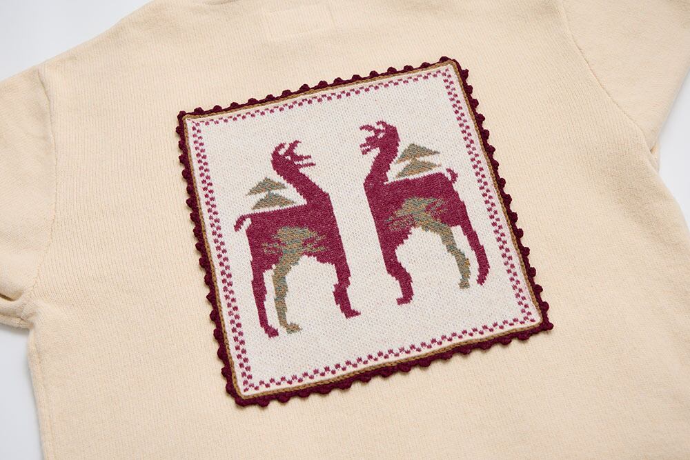 後身頃のジャカード柄は、アルゼンチンの旅で出会った伝統織物をモチーフにしています。
