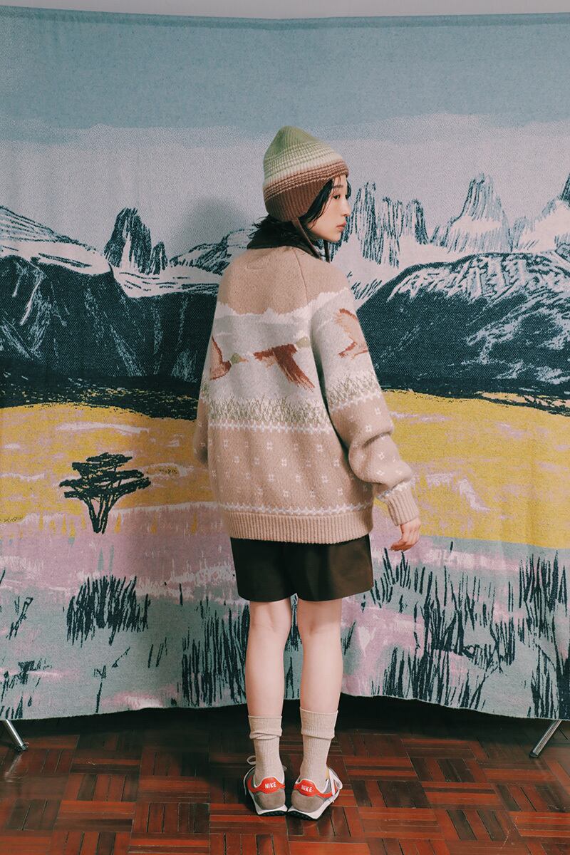 井の頭公園のマガモから着想を得た配色を生かし、デザインしたフライトキャップです。