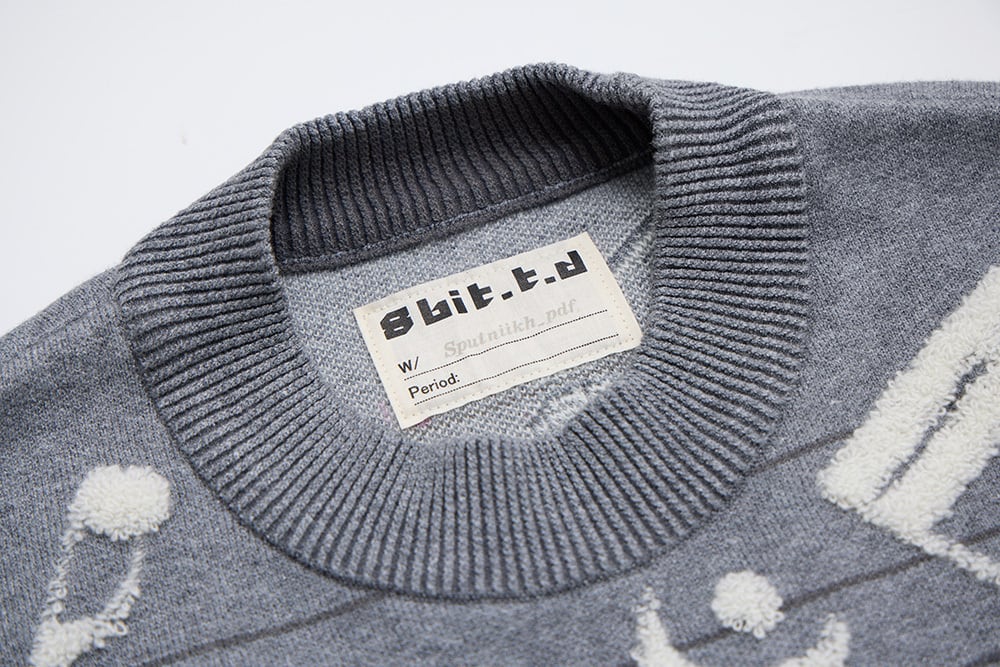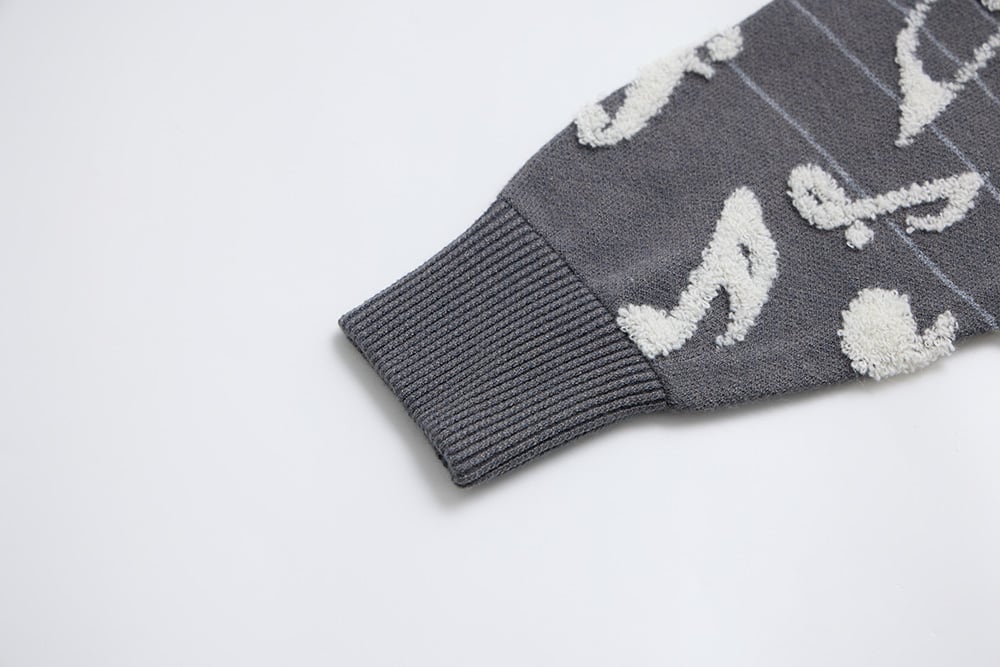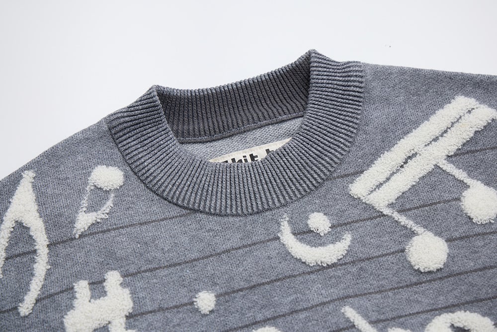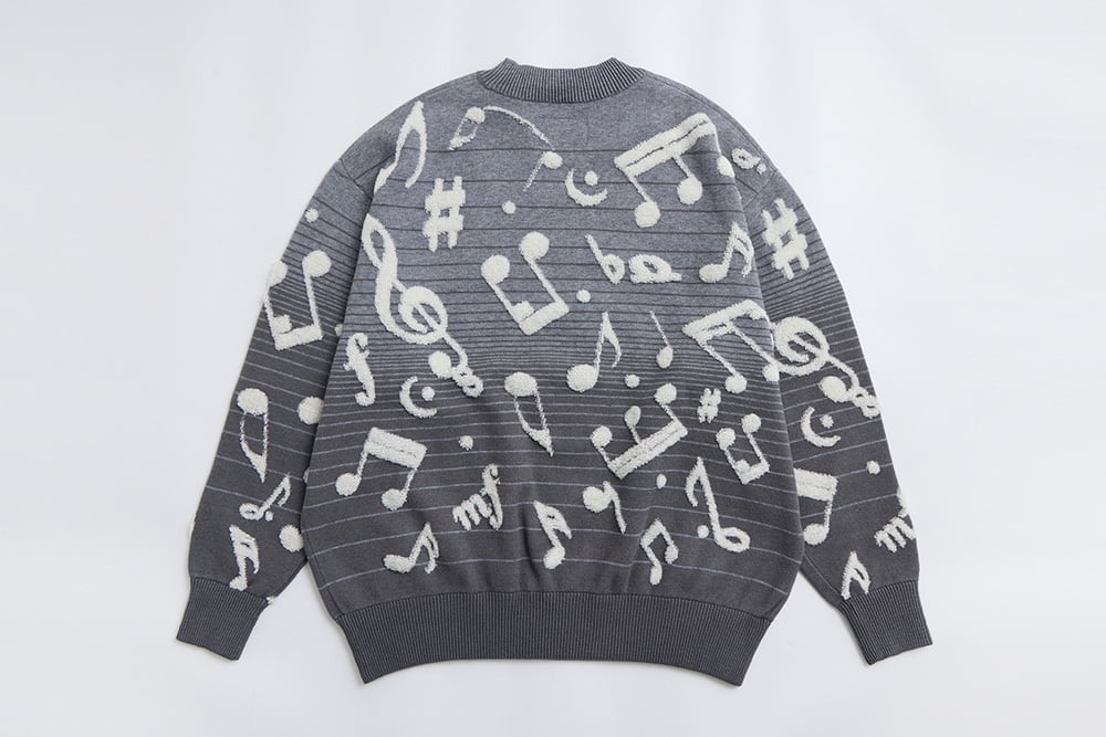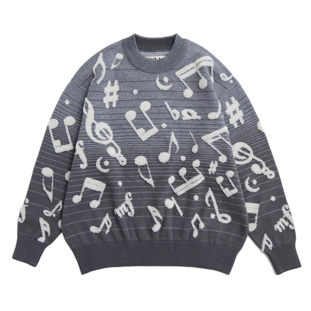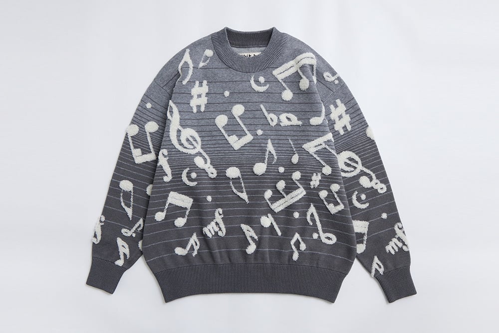 美麗湾の漂う音符ニット長袖トップス ダークグレー