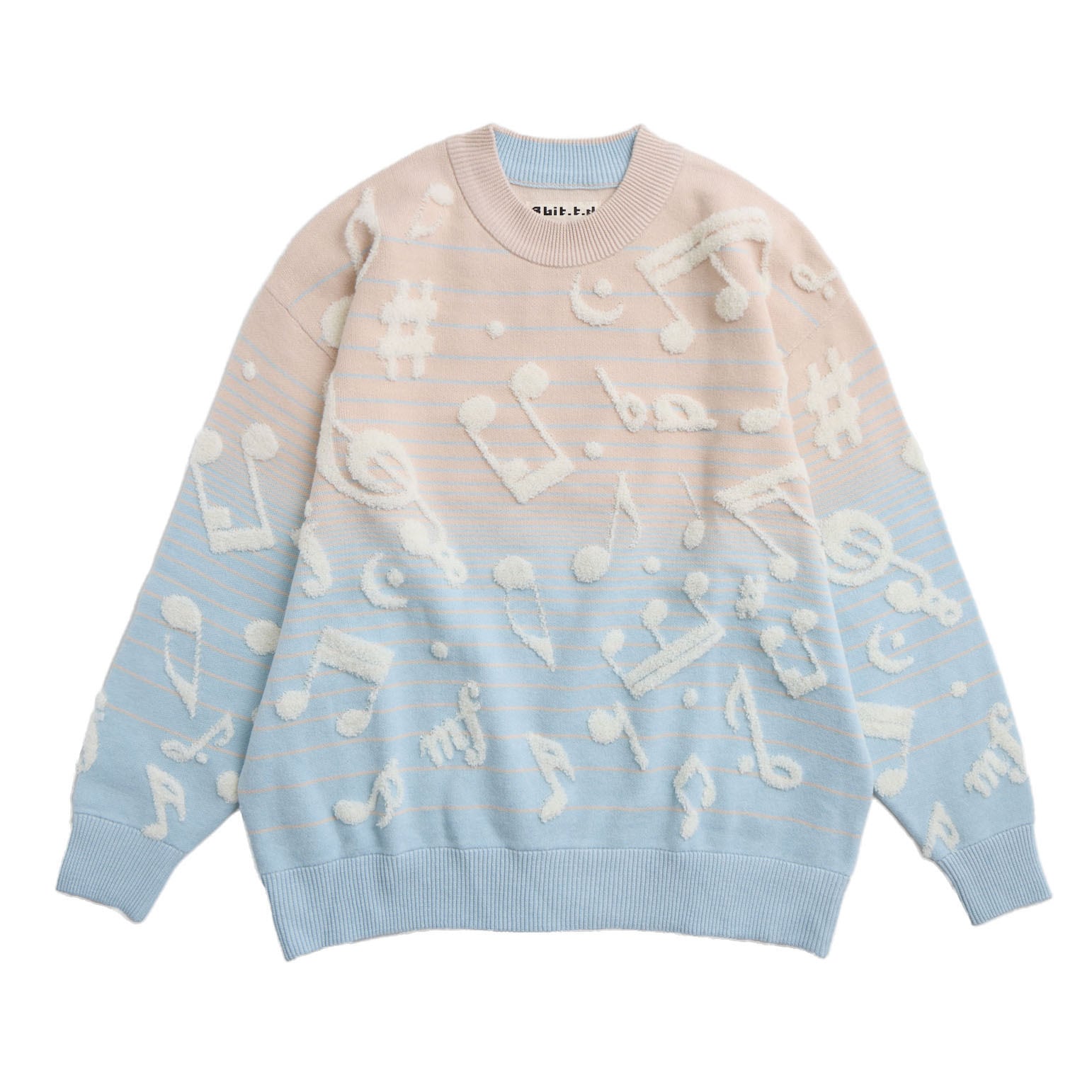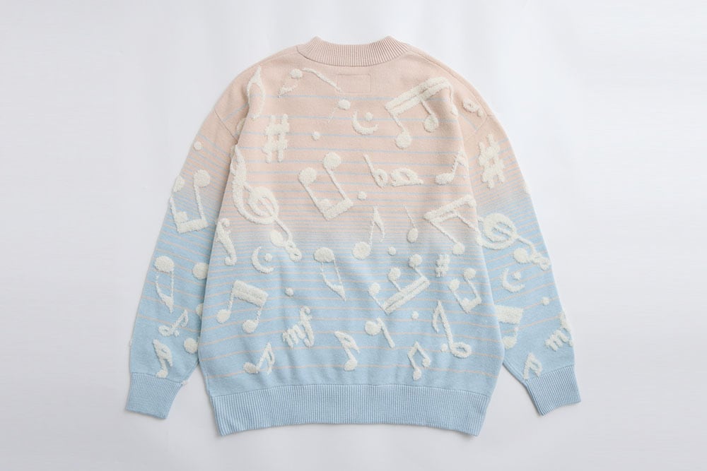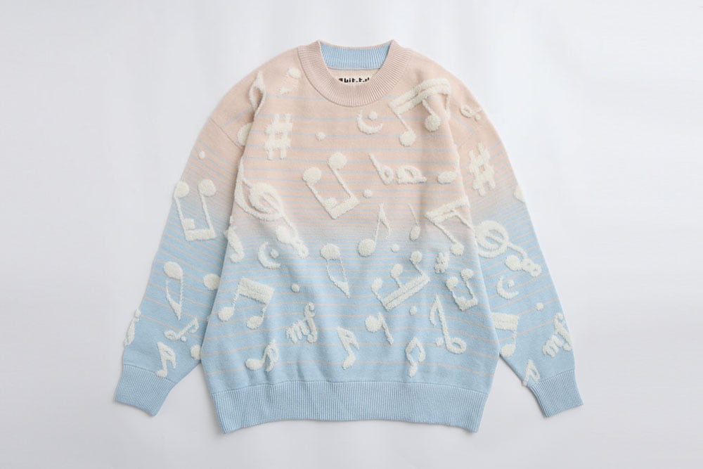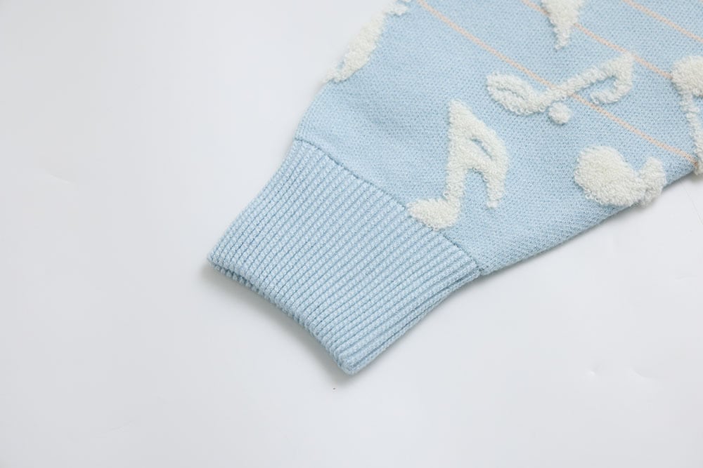 美麗湾の漂う音符ニット長袖トップス アーモンドブルー