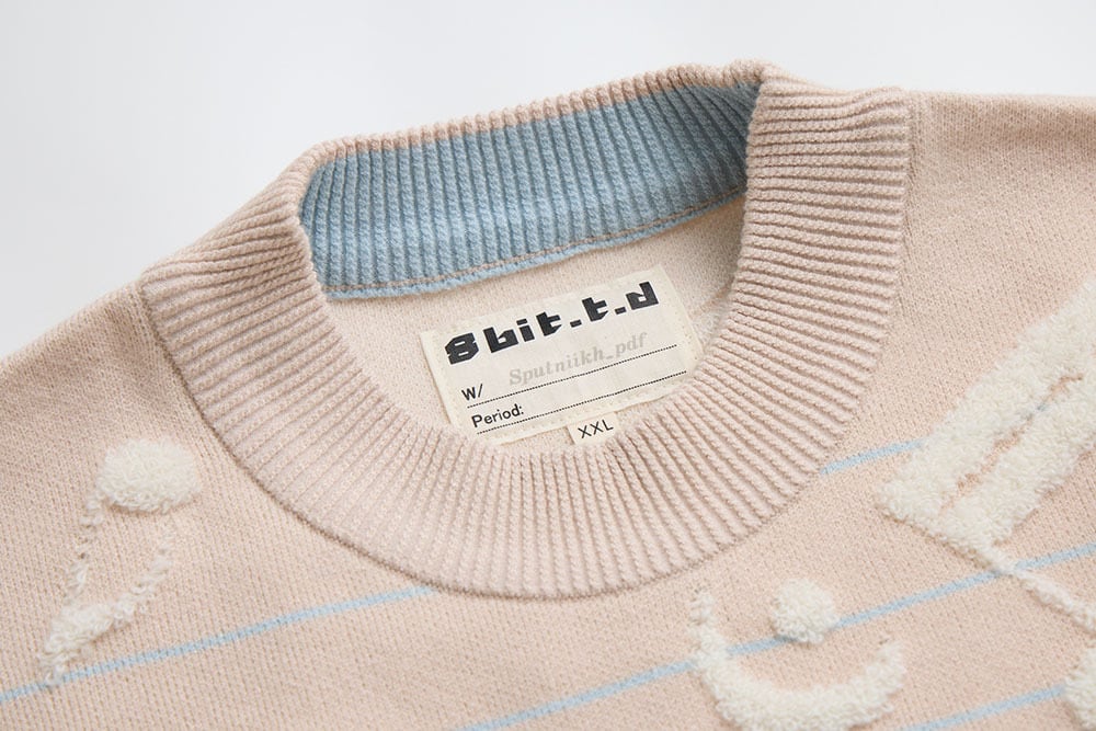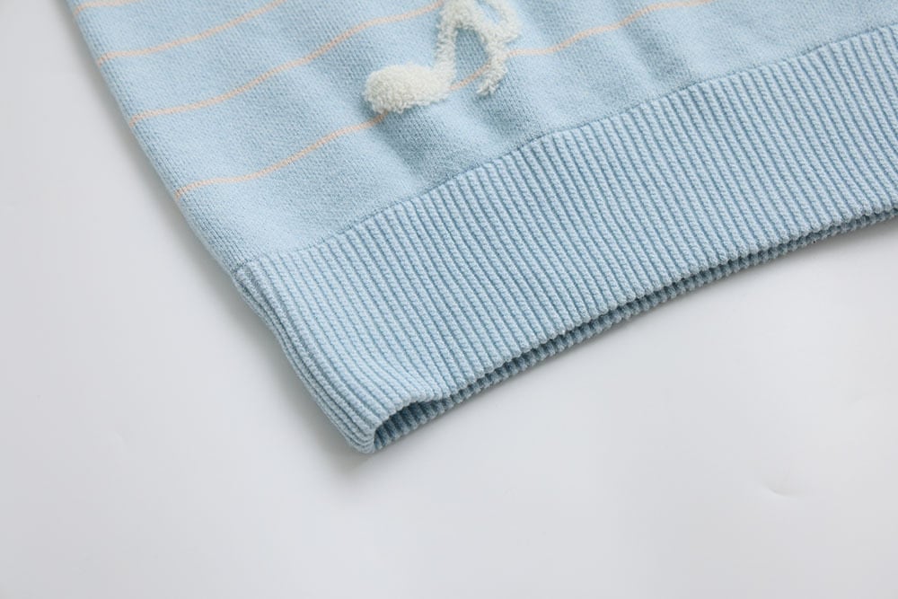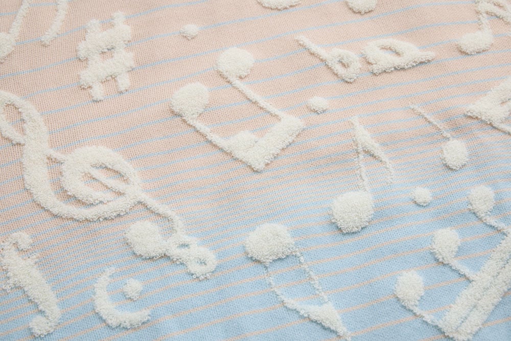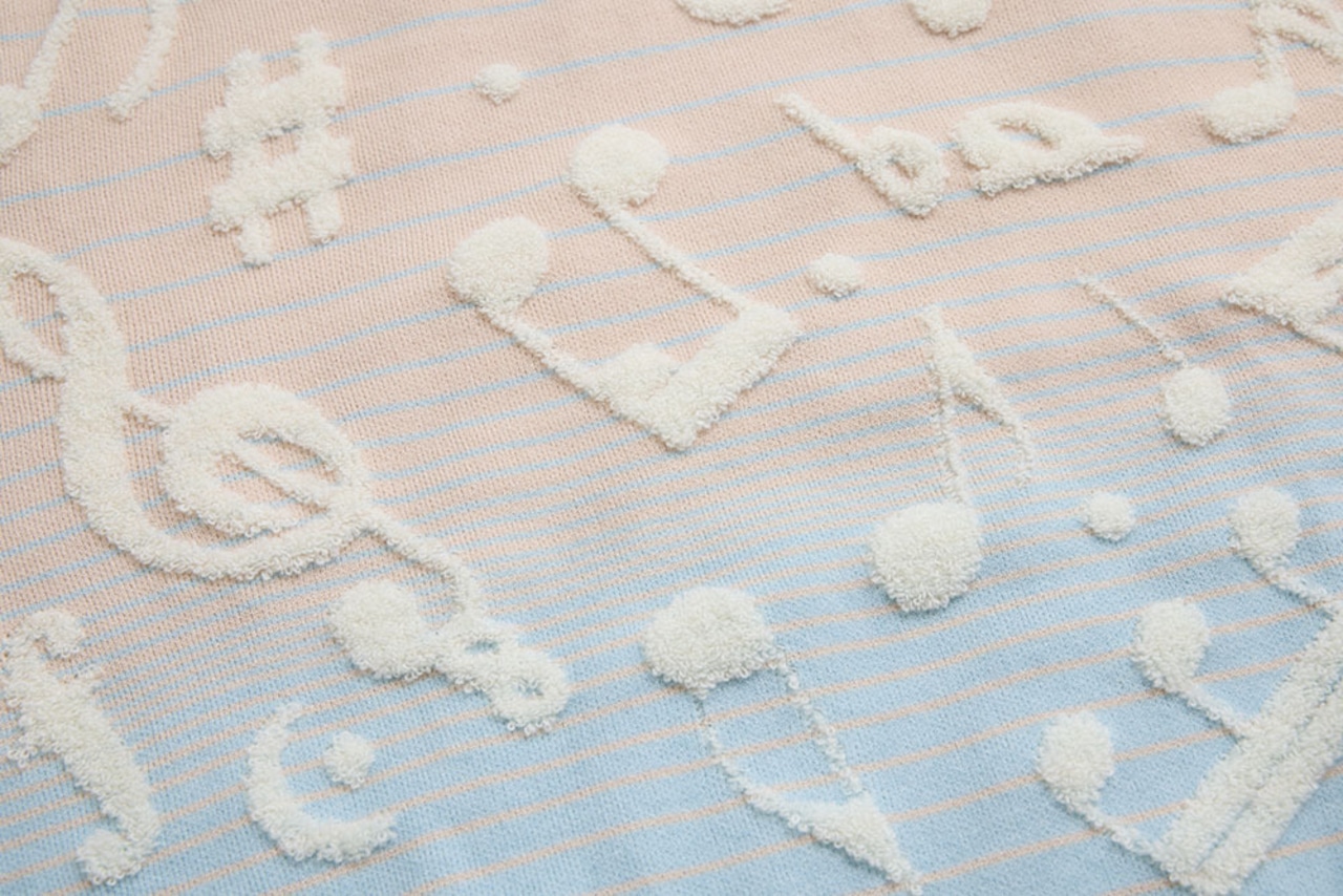 美麗湾の漂う音符ニット長袖トップス アーモンドブルー
