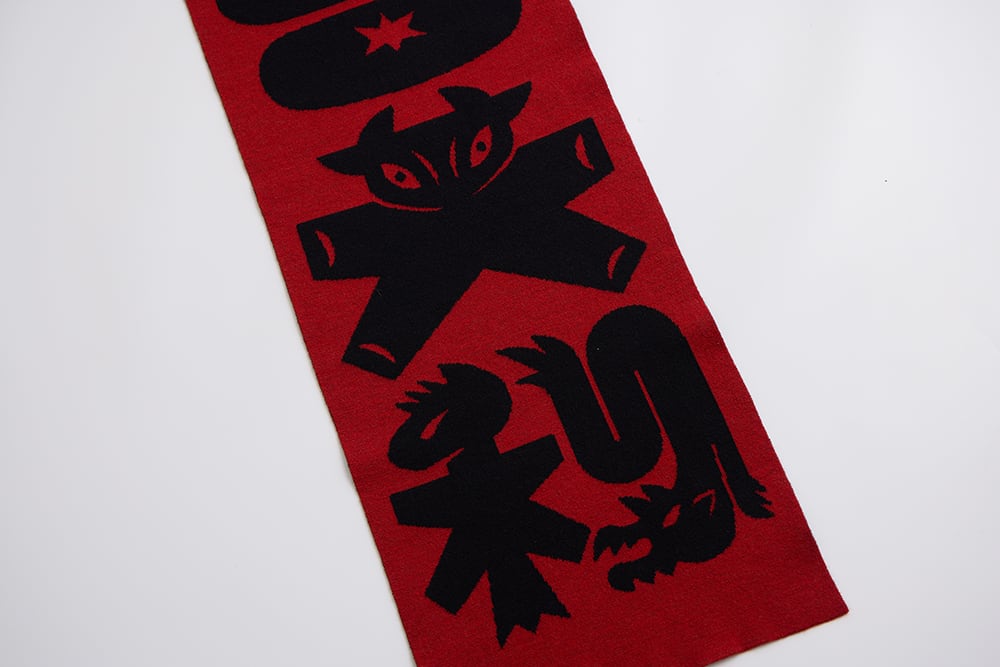 アーティスト・美山有がデザインした新年のご挨拶グラフィックを活かして制作したマフラーです。「恭喜發財、大吉大利」という、年々親しまれてきた祝賀の言葉の中に、さりげなく十二支のモチーフが隠れています。吉を象徴するマフラーを身にまとい、素敵な新年を迎えましょう。