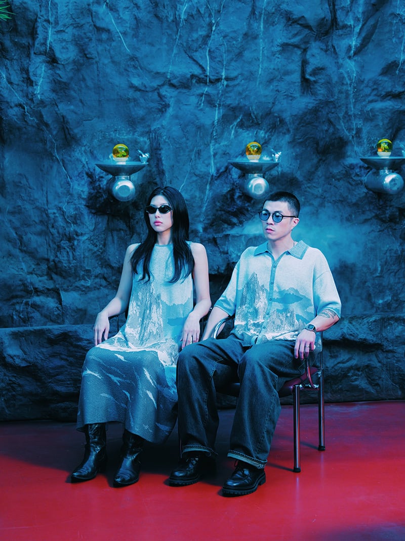ニットジャカードで組織に変化を加えながら、