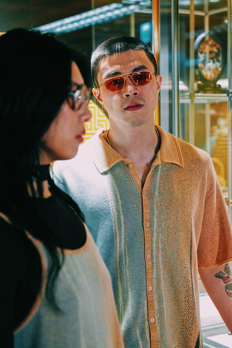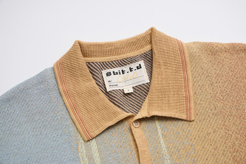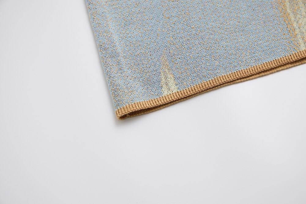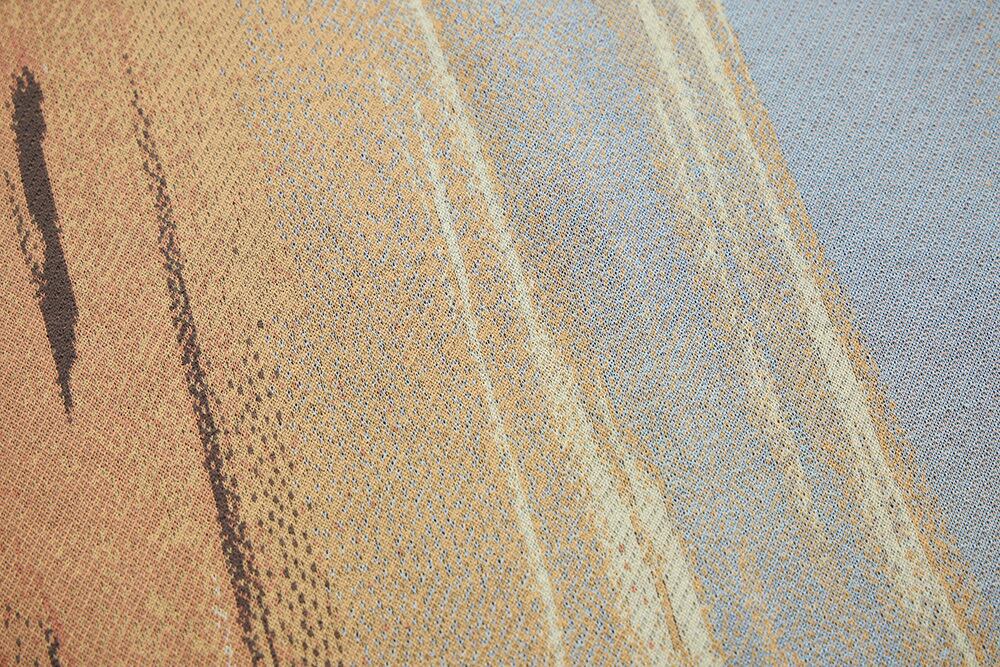 グラデーションが左身頃から右へと変化していくように表現しています。