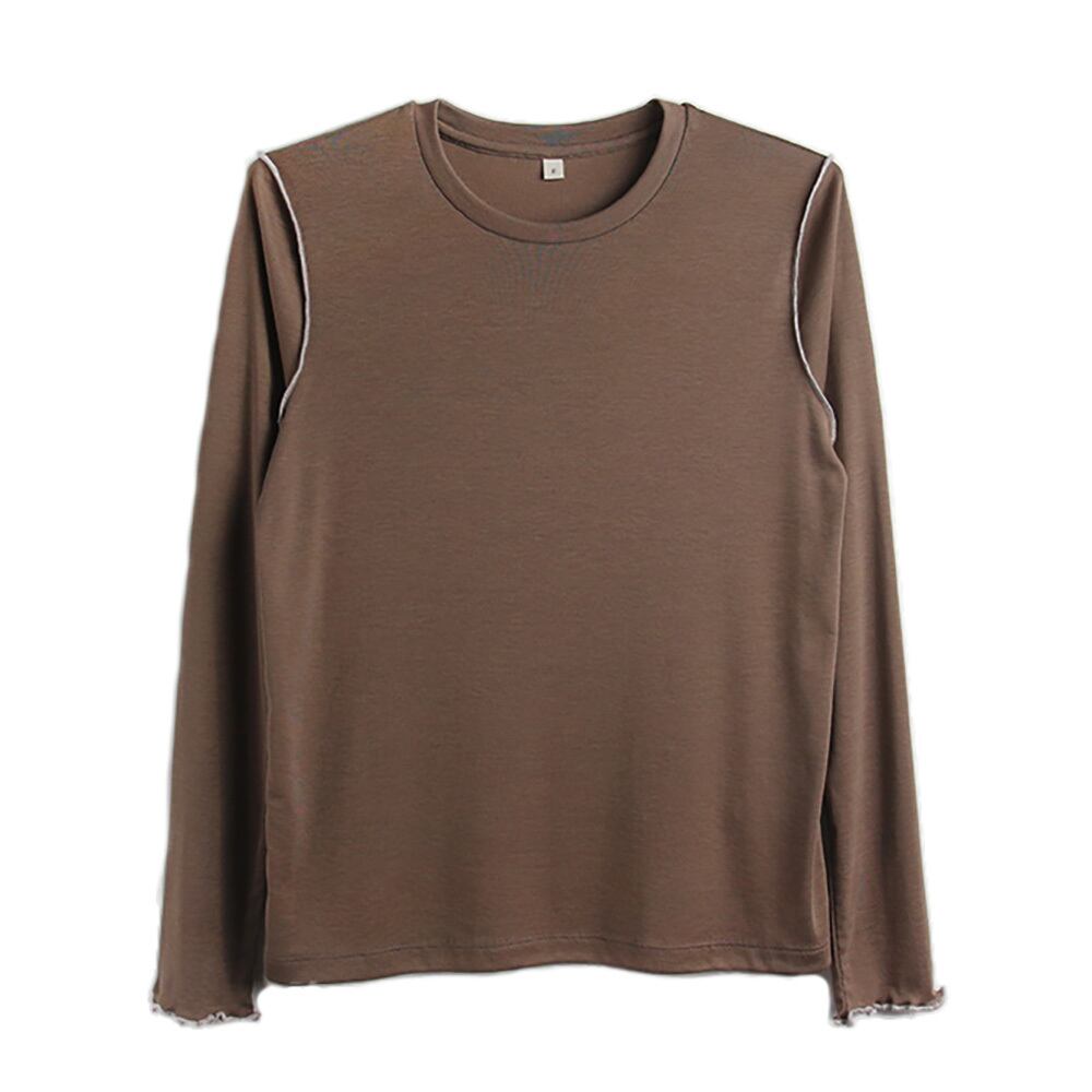 メロー長袖薄手トップス ブラウン